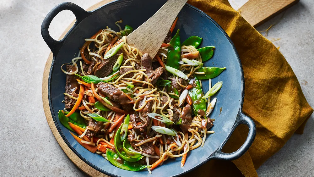 Beef, egg, green peas, corn kernal, carrot, scallion.