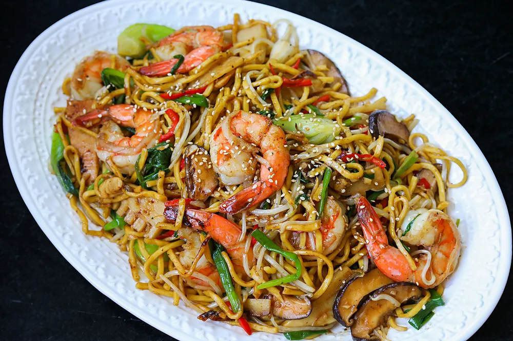 Shrimp, squid, fish ball, shrimp balls, scallion.