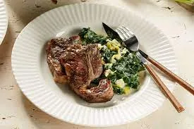 With sautéed baby spinach and cauliflower.