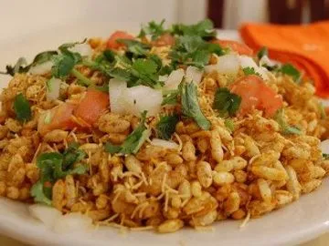 One of the most popular street foods in India. Delicious mixture of puffed rice, sev, tomato, potato, onion and sweet-sour-spicy chutneys. Vegan and gluten-free