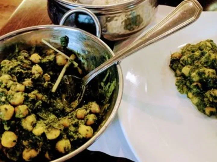 Chickpea prepared with a blend of creamed spinach. Contains dairy. Gluten-free. Vegan option available.