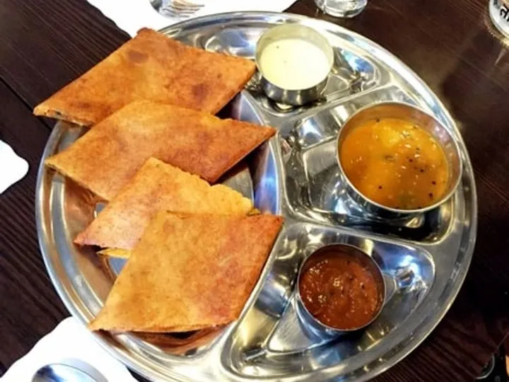 Spicy Dosa rolled with potato & onion masala. Vegan, gluten-free, and spicy