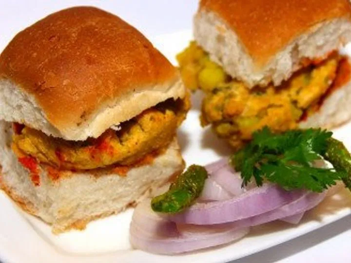 Batata Vada served in a bun with spicy & tamarind chutneys. Vegan and spicy