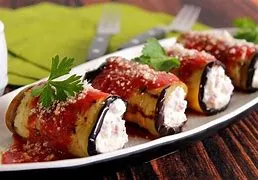 Thinly Sliced, Baked, Breaded Eggplant, stuffed with Ricotta and Parmigiano topped with Pomodoro Sauce.