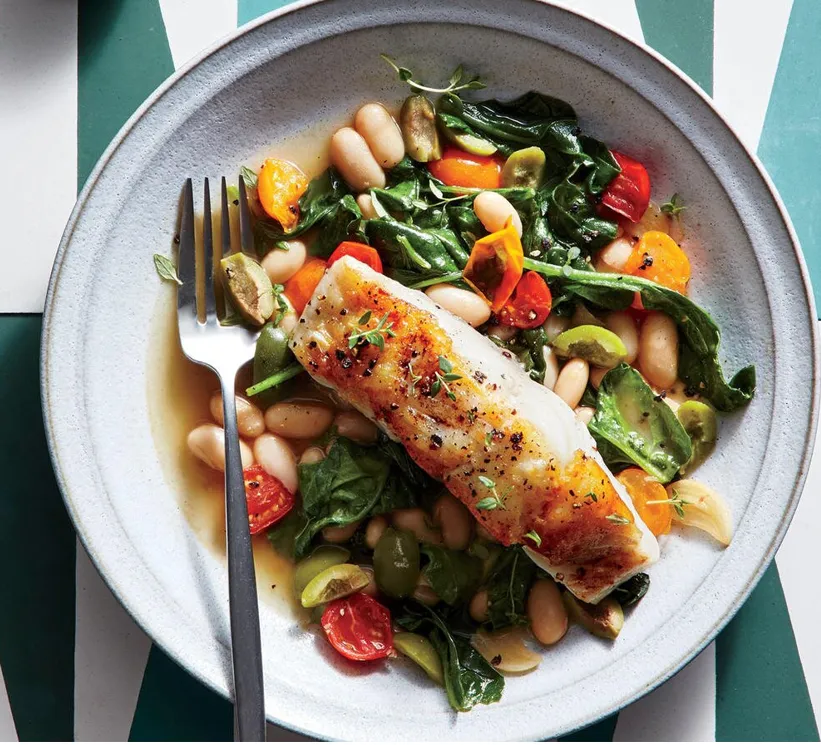 Roasted baby carrots & bok choy marinated w/ hoisin sauce, herb infused potato pure, watermelon radish salad and tangy orange reduction