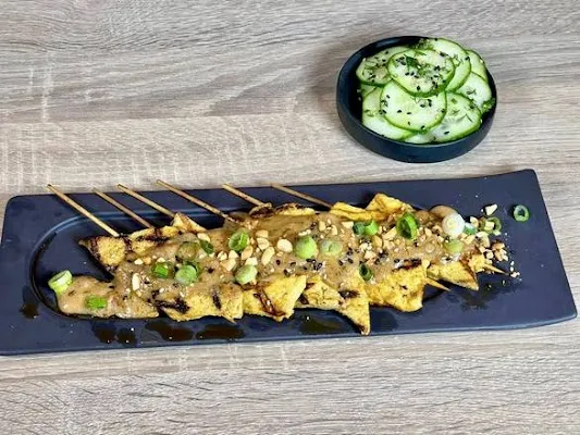 Pickled cucumber salad, cilantro, crushed peanuts, spicy peanut butter dipping sauce