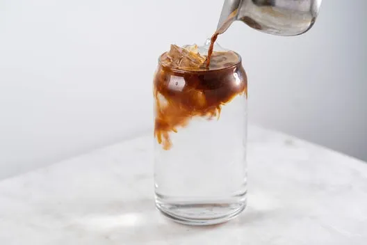Rotating Single-Origin espresso poured over ice and water.