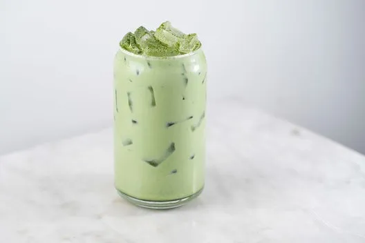 Ceremonial grade matcha green tea powder that naturally detoxifies the body, is rich in antioxidants, and provides a valuable source of fiber and vitamins with almond milk.
