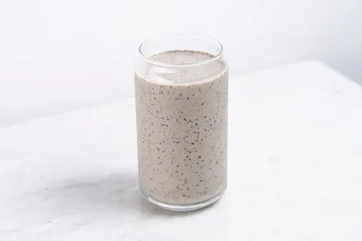 Banana, blueberries, almond milk, peanut butter with vanilla plant protein powder. Allergens: N = Contains Nuts