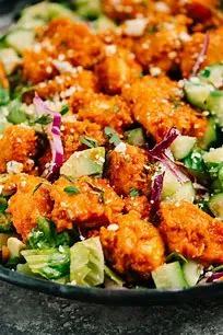 Chopped Buffalo chicken, smoked bacon, avocado, egg, tomato, crumbled Bleu cheese and Romaine lettuce with bleu cheese dressing.