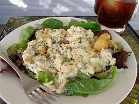 With cole slaw, potato salad, tomato and hard boiled egg.