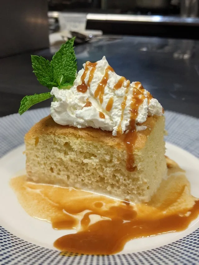 Traditional Three milks party cake. Rum-Caramel sauce.