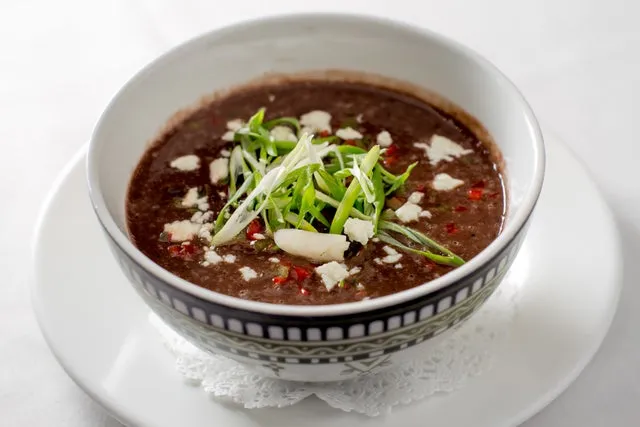 Epazote, oregano, queso fresco, and Scallions. Vegetarian and vegan if you prefer without cheese.