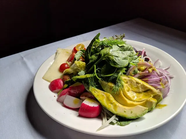 Mixed greens, tomatoes, beets, hard boiled egg, Green beans, radishes and avocado with roasted jalapeno vinaigrette and queso fresco