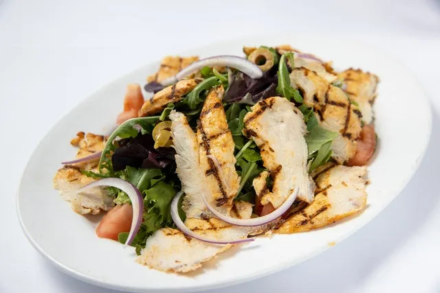 Mixed greens, grilled chicken, tomatoes, olives, onions, balsamic dressing
