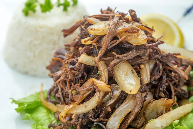 Pan-seared shredded skirt steak, fresh mojo, onions, parsley, lime