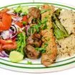 Served with rice, lettuce, onion, grilled tomatoes, pepper, homemade Turkish bread and sauce.
