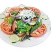 Fresh tomatoes, lettuce, green peppers, cucumbers, topped with feta cheese and dressing