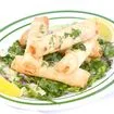 Five pieces. Delicate filo dough wrapped with feta cheese and parsley and deep fried