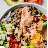 Our signature beef burger served on a bed of lettuce, tomato, avocado, sautéed mushroom, grated cotija cheese tossed in our house made avocado sauce.