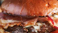 We suggest our beef burger. Topped with truffle mac and cheese, chopped bacon, cheddar and onion ring. Served on a brioche bun.
