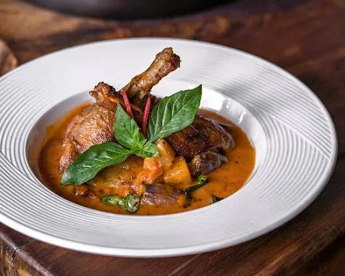 Crispy roast duck, red curry coconut milk, eggplant, green chilies, Thai basil, pineapples, and tomatoes. Rice not included. Menu item is not available at the moment