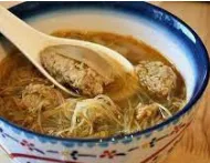 Glass noodles. Clear broth, chopped pork shoulder cilantro, white pepper, and garlic oil.
