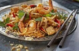 The classic rice noodles, long thin noodles, stir-fried chives, bean sprouts, small tofu, eggs, crushed peanuts, and sweet radish. (VEGETARIAN OPTION - bamboo shoots, babycorn, and mushrooms ONLY)
