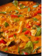 Creamy red curry, smooth and mellow, kaffir lime leaves, and coconut milk. Rice not included.