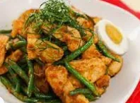 Curry paste, kaffir lime leaves, and long green beans. Rice not included.