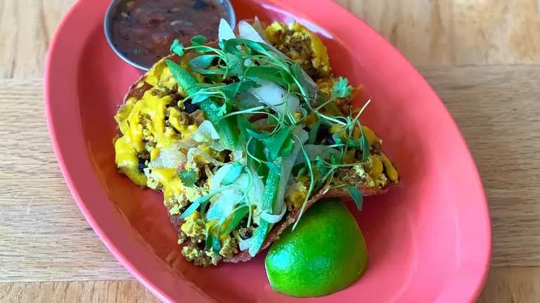 Scrambled "eggs", our "chorizo", jalapeño, onion, nacho cheese. Contains nuts.