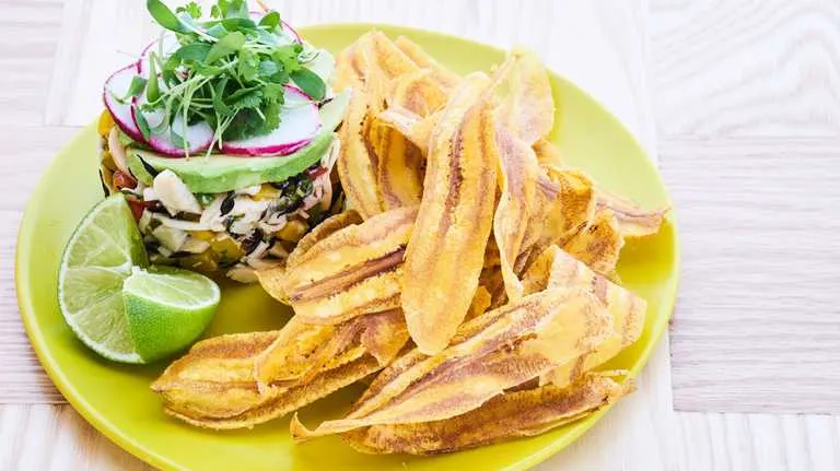 Jalapeño, hijiki seaweed, red pepper, cilantro, cherry tomato, avocado, served with plantain chips. Gluten free.