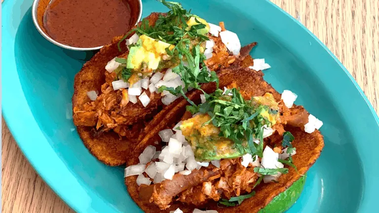 Banana blossoms, avocado, salsa botanera, cilantro. Spicy.