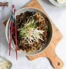 Elsyian Field Lamb Ragu, Black Bean Sauce, Szechuan Pickle Onion, Herbs Cucumber.