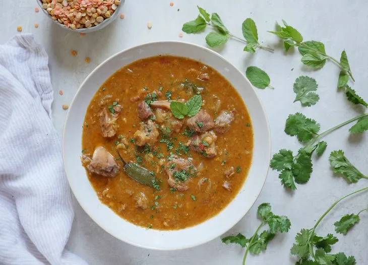CUBES OF LAMB & YELLOW LENTILS SIMMERED IN A DELICATE SAUCE OF SPICES & HERBS Served with Premium Basmati Rice