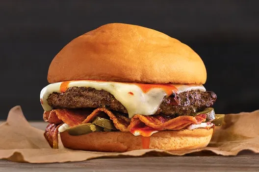 Quarter pound of fresh, never-frozen Certified Angus Beef®, Pepper Jack Cheese, Applewood Smoked Bacon, Jalapeños, Cholula®, Mayo, Gluten-Free Bun