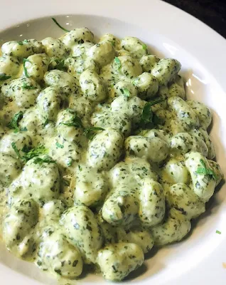 Vegetarian. Basil pesto, extra virgin olive oil, Parmigiano cheese.