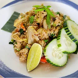 Classic Thai fried rice with onions, tomatoes, scallions and egg with light soy sauce.