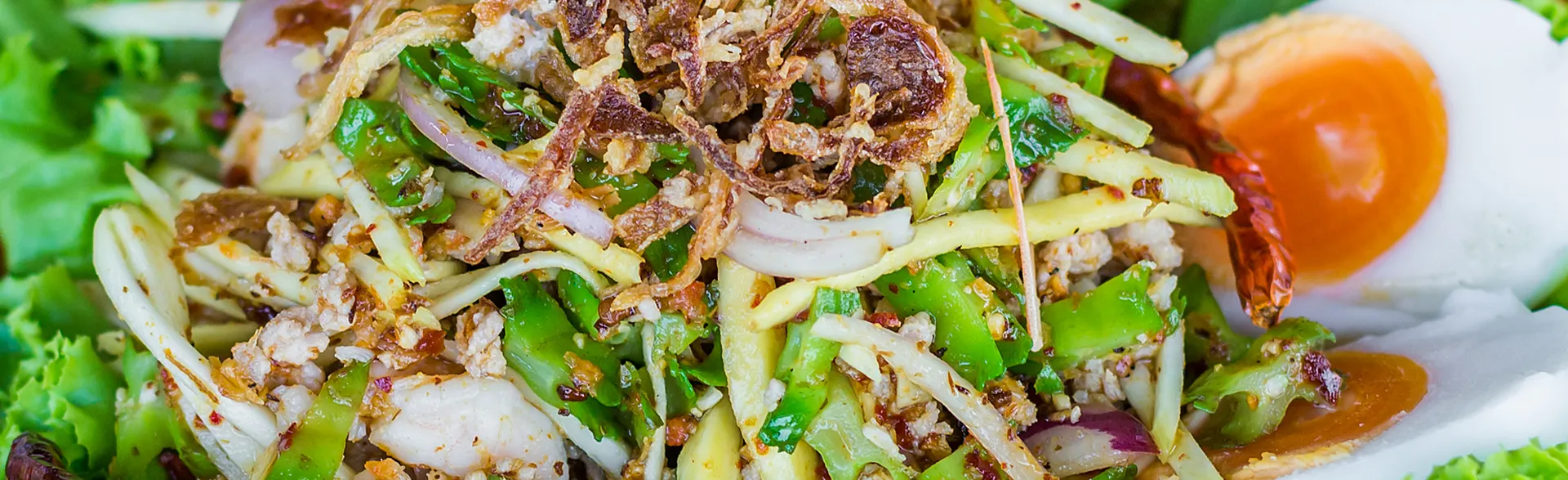 Noodle dishes and grilled fare inspired by Southeast Asian cuisine.